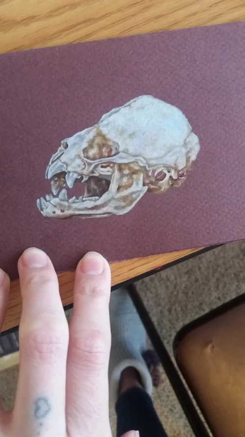 Watercolor on paper, blood orange, human hair, Micron pen, parchment paper